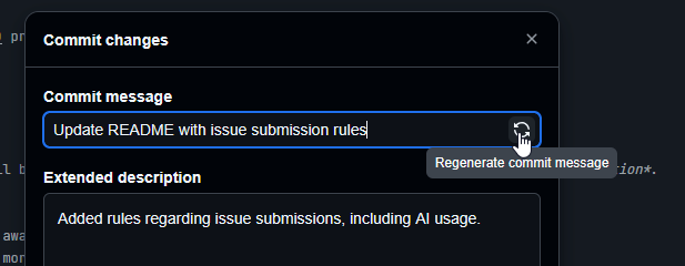 The absolute irony that GitHub tried to AI generate a commit message for this https://fs.ryujinx.app/ljwxZFOgSdmT_rOINMrYCA.png |